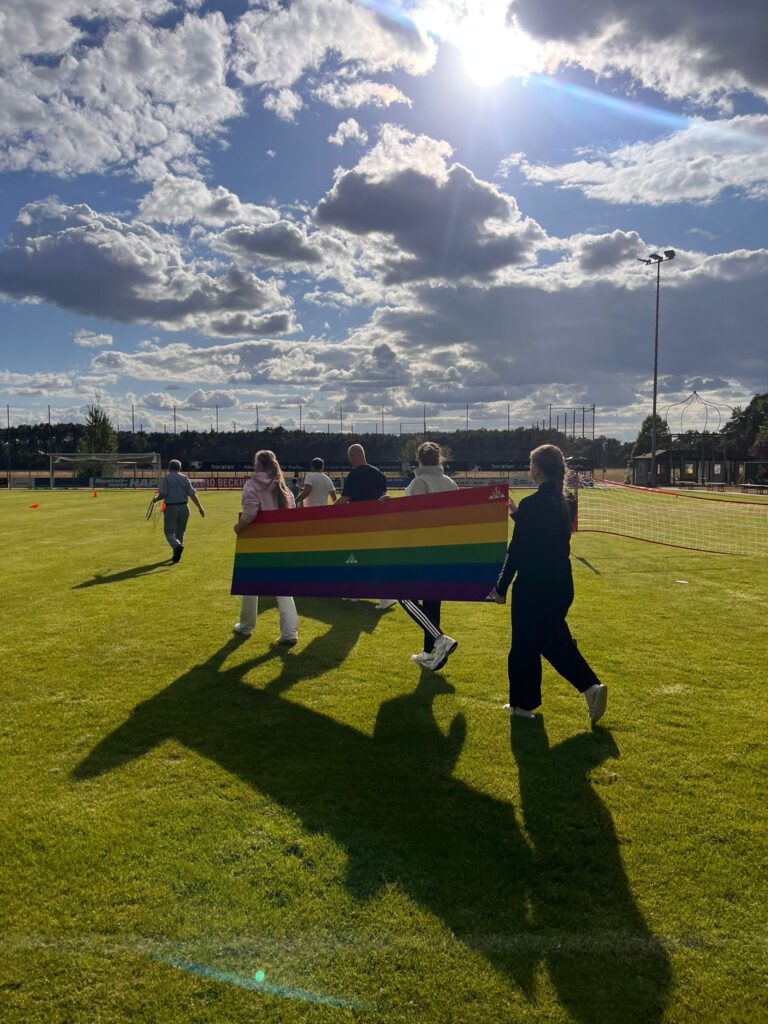 Im Jahr 2025 lud die Gleichstellungsgruppe des SJC zum neu ins Leben gerufenen 12-Stunden-Fußball-Tag auf das Sportgelände unter Lückings Eichen ein. Auf und neben dem Sportplatz wurden vielfältige Aktionen initiiert, bei denen Groß und Klein spielen, backen, rätseln oder einfach genießen durften. Absoluter Höhepunkt des 12-Stunden-Tages war das feierliche Aufhängen einer Regenbogen-Bande. Symbolisch präsentiert sie den vehementen Widerstand gegen jegliche Ausgrenzung und den tatkräftigen Einsatz für die voraussetzungslose Gleichberechtigung aller Menschen, insbesondere zwischen den Geschlechtern. An diesem bunten und abwechslungsreichen Feiertag konnten Spendengelder in Höhe von 450 Euro gesammelt werden, die der Beratungsstelle Belladonna in Paderborn gewidmet waren – eine sehr gute Wahl, denn die Ziele von Beratungsstelle und Verein passen hervorragend zueinander.